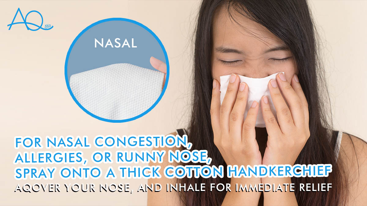 As the weather turns cooler, if you experience nasal congestion, allergies, runny nose, or coughing, spray the AQ General Purpose onto a thick cotton handkerchief, cover your nose, and inhale - you will see immediate relief! Using a tissue for this purpose is not as effective as using a handkerchief.
