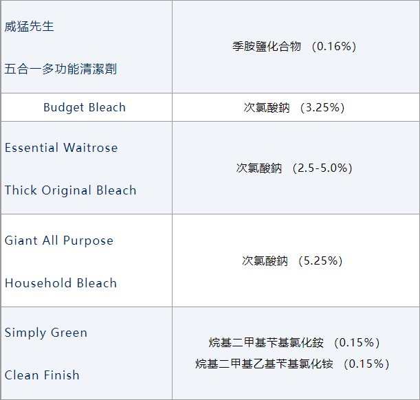 另外,香港公開大學亦測試了6款在市場上較為常見的消毒用品殺菌能力,包括: